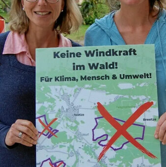 Vor der Sitzung von vier städtischen Ausschüssen im Kulturforum protestieren Mitglieder des BUND, des VCD und von Parents4Fu- ture gegen Planungen Lüneburgs, in einem Wald bei Deutsch Evern Windkraftanlagen zu errichten.Foto: jz Klimaschutz mit...