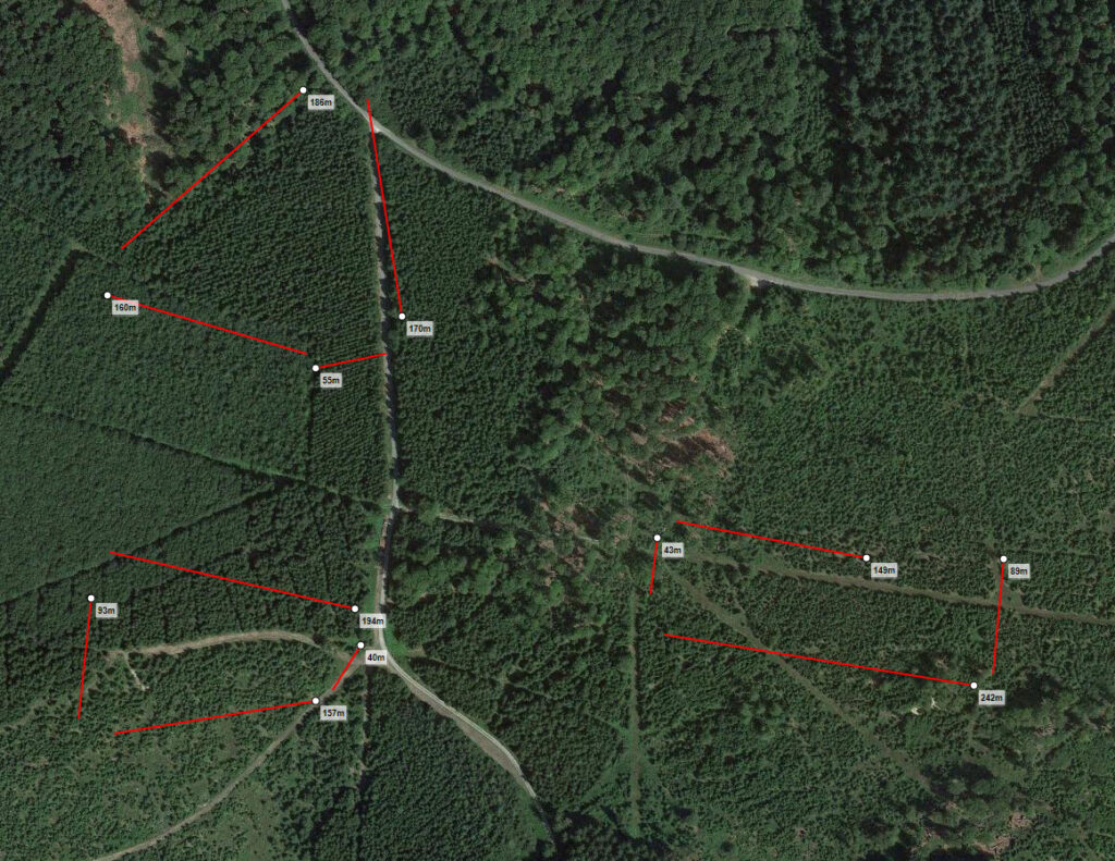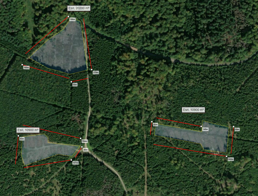 Immer wenn man nachfragt, welche Waldfläche für ein Windrad gerodet werden muss, ist von etwa 0,47 Hektar (also z.B. 100 x 47 Meter = 4700 m²) zu lesen. Die Flächen für die erforderlichen Zuwegungen werden selten genannt.